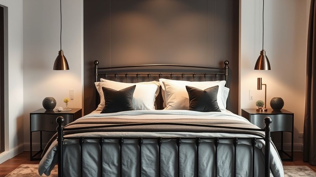 Combinação de cabeceiras de cama de ferro com roupas de cama luxuosas
