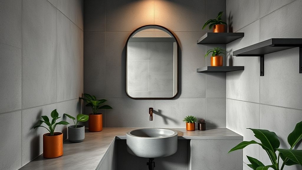 Embora o estilo industrial se baseie em materiais brutos, é importante incluir acessórios sofisticados para manter o equilíbrio e a elegância. Espelhos com molduras de metal ou aço escovado, prateleiras minimalistas de ferro e toalheiros simples, mas refinados, ajudam a complementar o ambiente sem sobrecarregar o visual. Adicionar plantas em vasos de cimento ou metal também traz frescor ao espaço, criando um equilíbrio entre a rusticidade do estilo industrial e a leveza dos acessórios de design mais moderno e sofisticado.