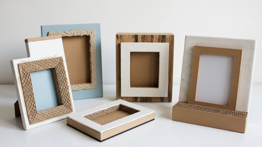 O papelão pode ser recortado e reforçado para criar quadros, molduras e painéis decorativos modernos.