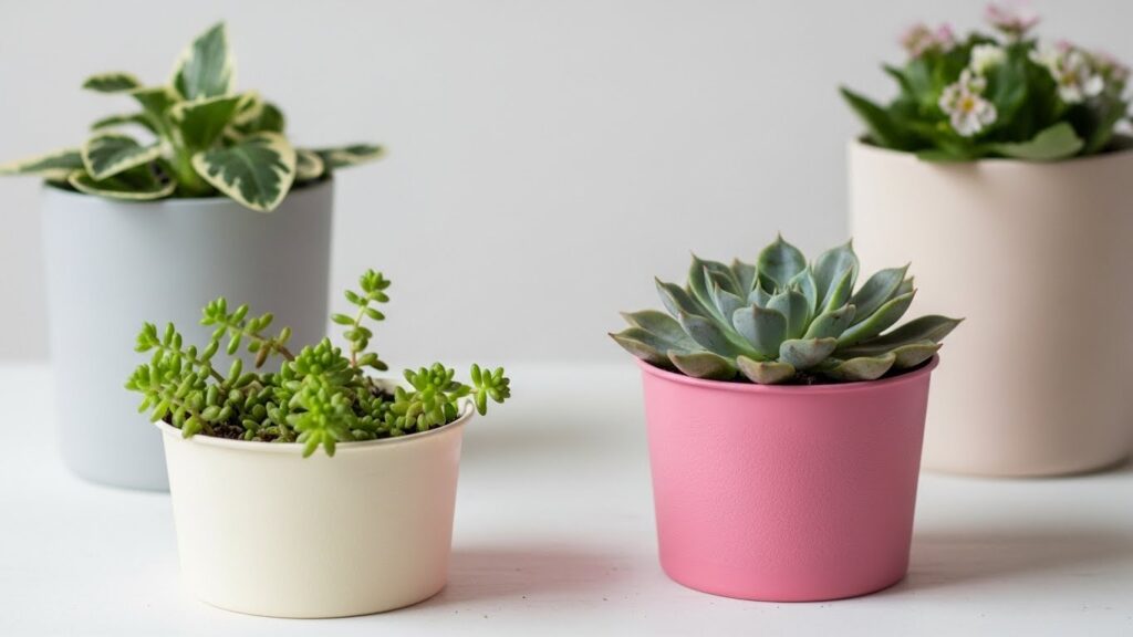 Cachepôs com potes de plástico