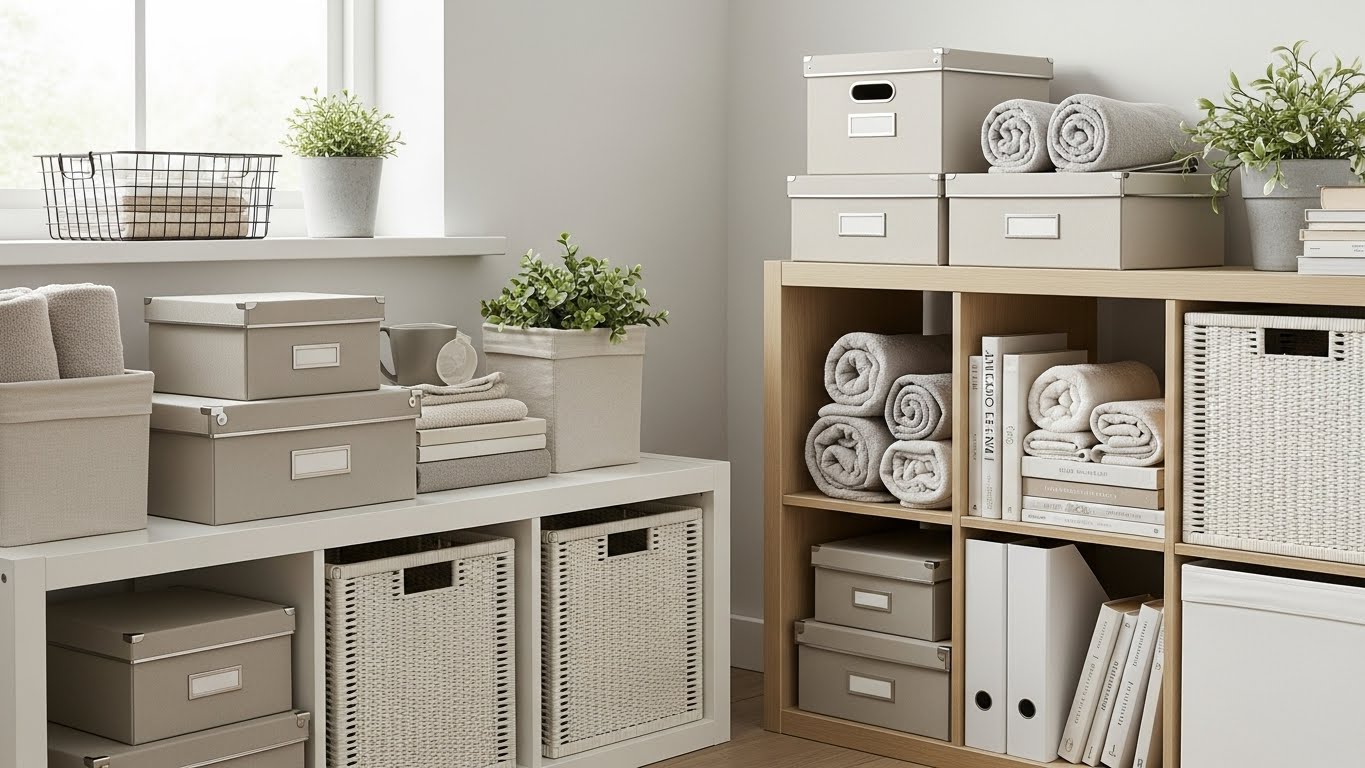 10. Organização Decorativa com Caixas e Cestos