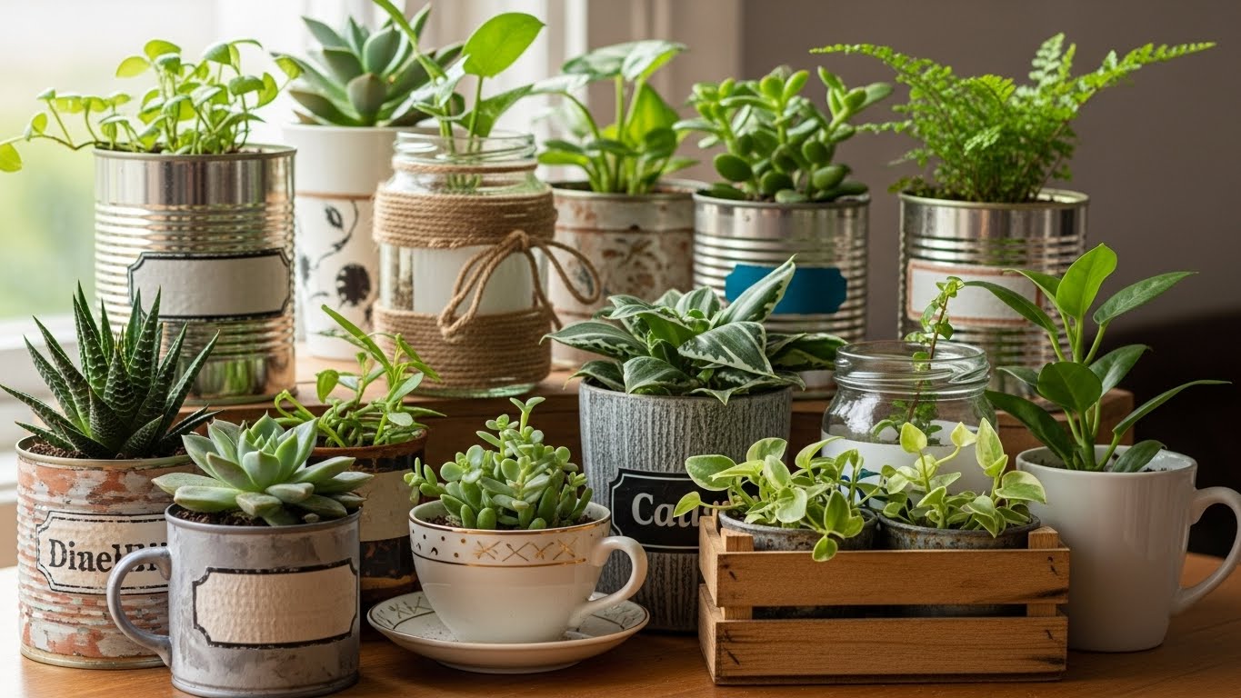 Plantas trazem vida, frescor e bem-estar para a casa. Espécies fáceis de cuidar e vasos reaproveitados, como latas, garrafas ou potes, são soluções baratas e cheias de charme.