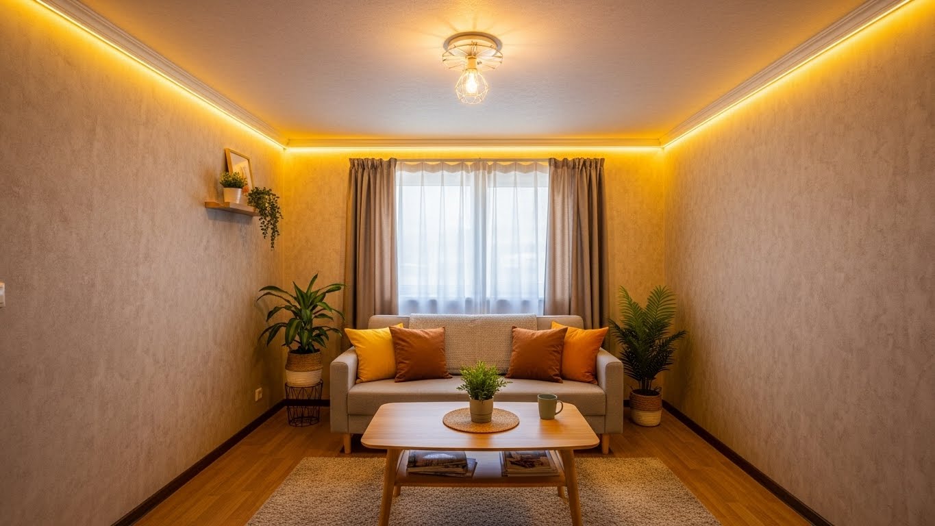 Uma boa iluminação transforma completamente qualquer ambiente. Fitas de LED, luminárias simples e até pisca-piscas criam um clima aconchegante e moderno, gastando pouco.