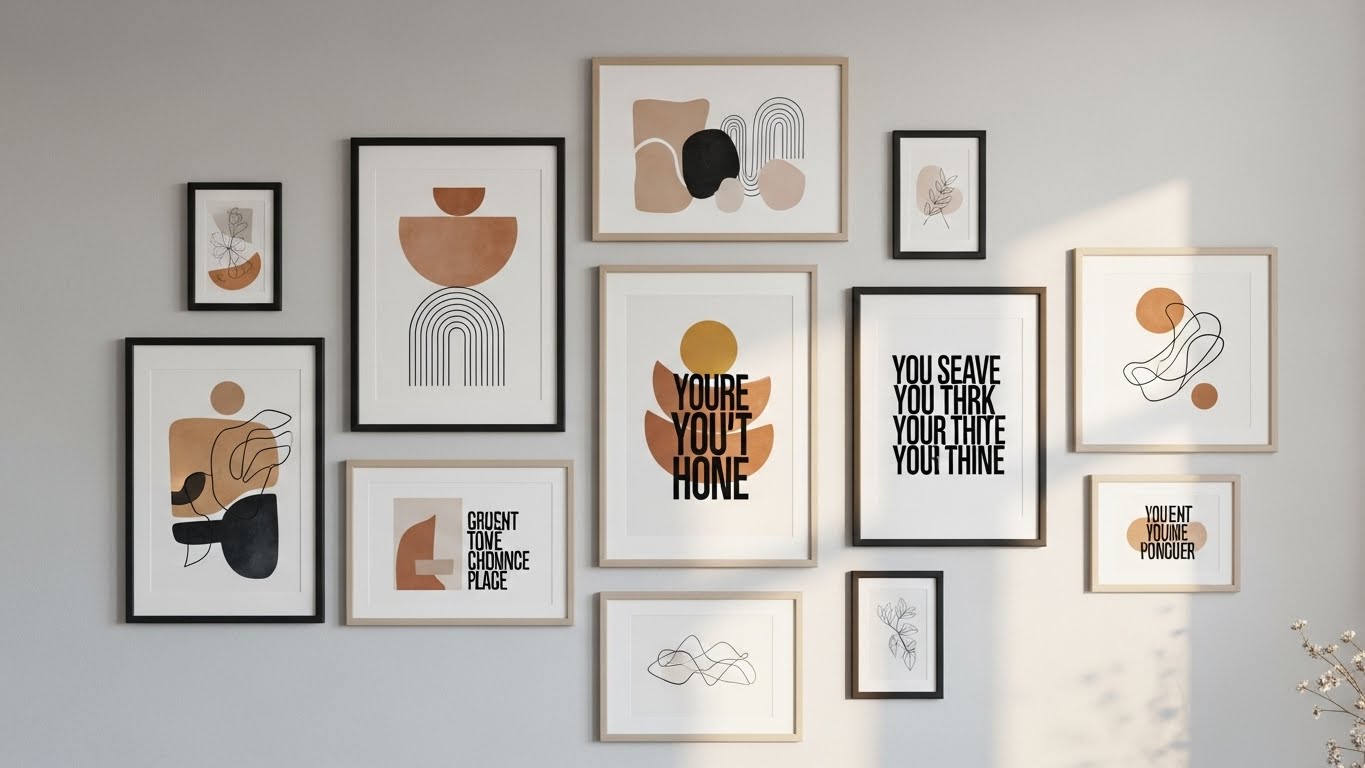 Criar sua própria galeria de quadros é mais fácil do que parece. Impressões simples, frases inspiradoras, ilustrações ou fotos pessoais podem ser usadas com molduras acessíveis ou até feitas em casa.