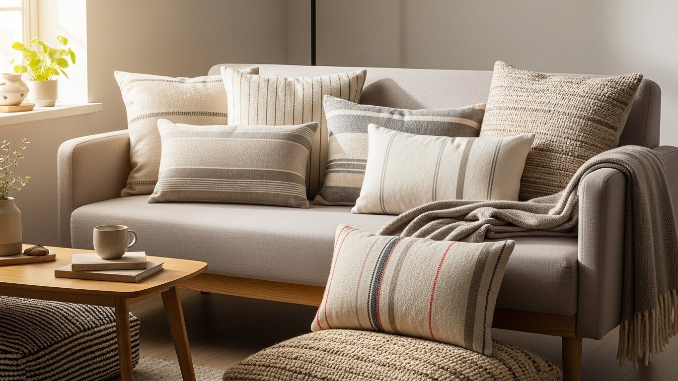 Trocar as almofadas do sofá é uma maneira rápida e barata de renovar a sala. Capas feitas com tecidos simples ou reaproveitados permitem mudar cores e estilos sempre que quiser, sem precisar comprar novas almofadas.